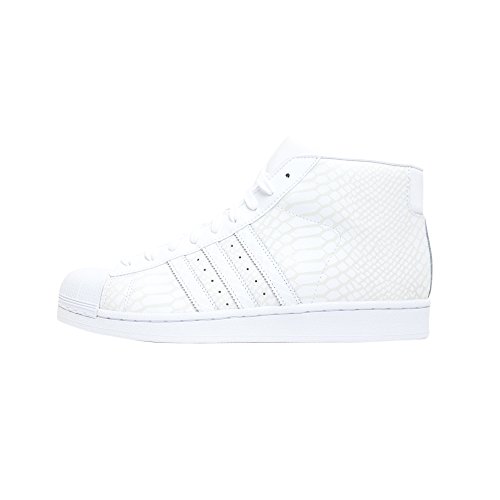 The Adidas Superstar Trainer eroberte in the late 70 's the Basketball Court and soon became legendary cult status. Now he celebrates his comeback, and stands as the first day in fashionable colorways. This version of the Pro model impresses with a high quality leather and ankle-high hour glass silhouette. The toe cap in shell design are the distinctive trademark and serves as an eye-catcher, at that time as today. Another eye-catcher is a distinctive design with printed pattern. A robust outer sole made from abrasion-resistant rubber rounds off striking that this is a quality design.