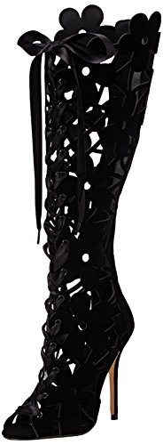 5 Inch Heel, Open Toe Front Lace-up Knee High Boot , 5 Inch Heel, Open Toe Front Lace-up Knee High Boot with Floral Cutouts and full Back Zipper