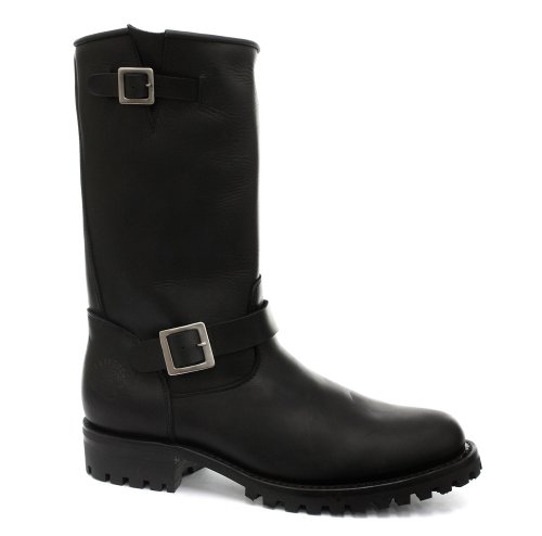Grinders were established in 1965 and have since become one of the leading "Street Fashion Footwear" brands from the United Kingdom. Designed by some of the best craftsmen in England, Grinders are renowned for the amazing footwear they produce and welted sole footwear. The sole unit, which is patented to Grinders, is heat sealed to the welt, giving the Grinder footwear range the strength and lasting durability of the Goodyear welt process. The unique air cushion sole enables flexibility and ensures guaranteed long lasting quality to every pair. NEW 2012 MODEL!!! The Grinders 5007 Wild One is a top of the range leather biker boot. Stylish and comfortable, they are great for everyday wear. Features an all black soft genuine leather upper, for durability, with twin metal buckle fastening across the foot and along the topline to adjust the calf fitting. Also features heat embossed branding on the outer side, a round toe, leather lining, a 1.5" heel and a branded chunky oil resistant rubber sole. The goodyear welted rubber soles delivers long lasting wear.